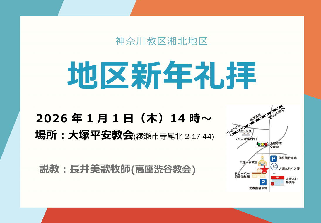 ◆2026年1月1日(木) 14:00 湘北地区新年礼拝@大塚平安教会:約60名出席