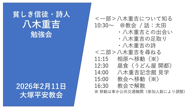 《一部》 10:30 八木重吉勉強会(講師:太田兄)